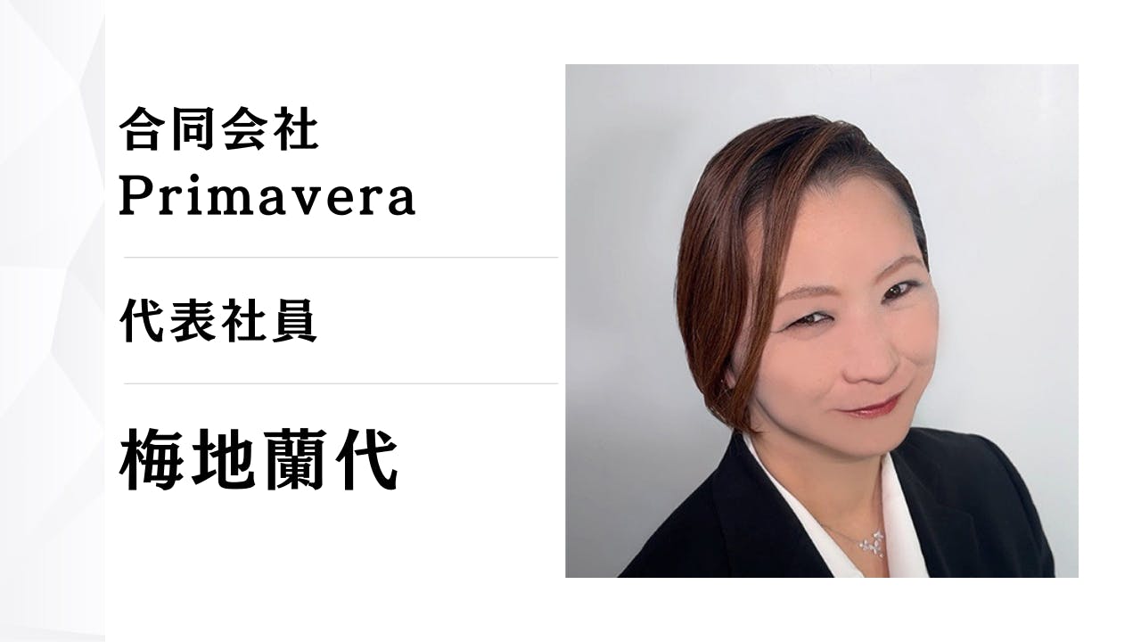 合同会社Primavera 代表社員の梅地蘭代です。