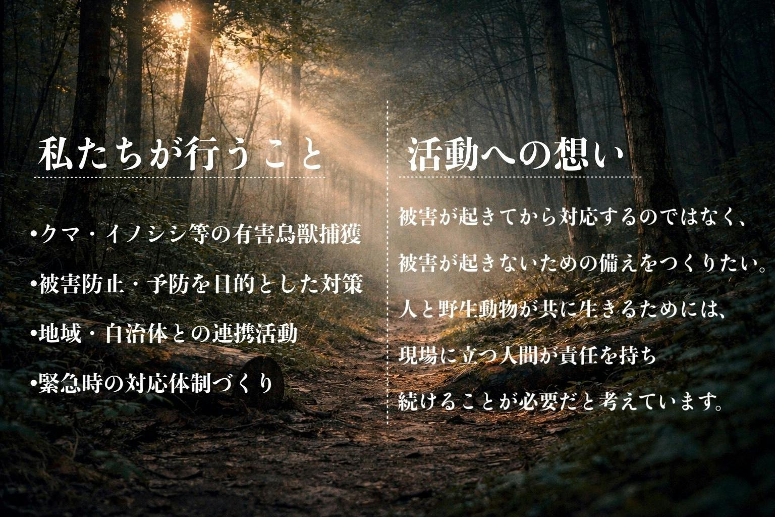 私自身、害獣対策の現場に関わる中で、被害を受けた地域の不安や、対応に追われる現場の負担を、何度も目の当たりにしてきました。