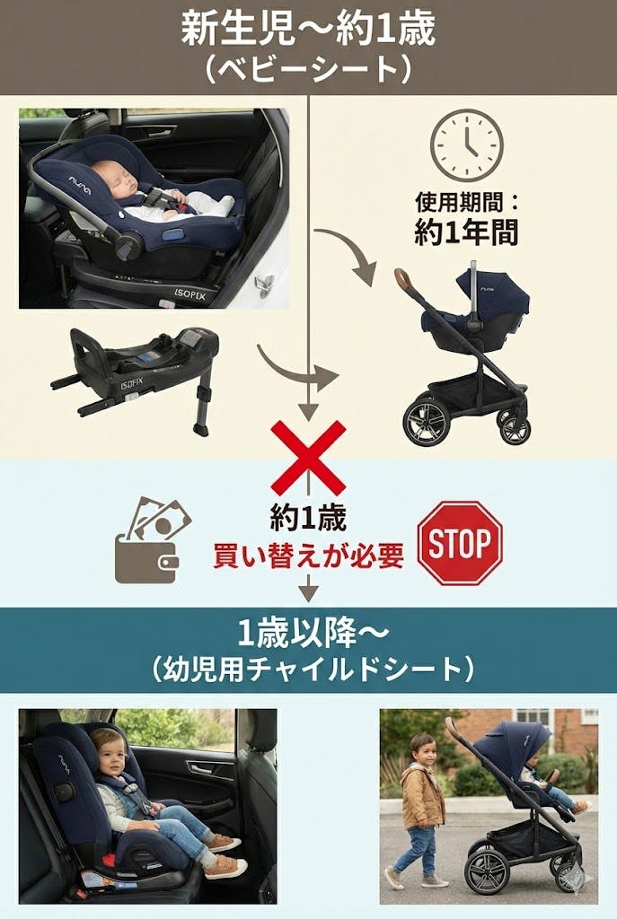しかし、「ベビーシート」と「ISOFIX台座」は、たった1年で役目を終え、不要になってしまうのです。