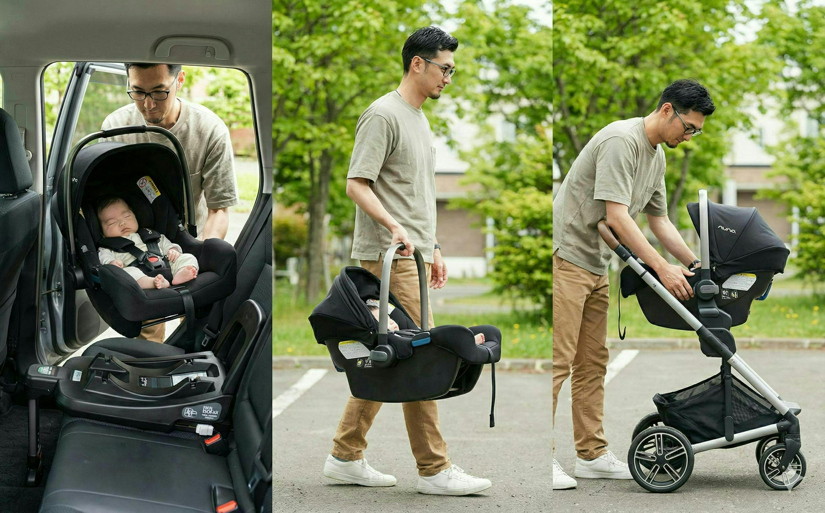 魔法の脱着式シート「トラベルシステム」を使って、何事もなかったかのように移動できる。ただそれだけで、あの「背中スイッチ」の恐怖から解放され、親子の時間はもっと穏やかで笑顔溢れるものになる。