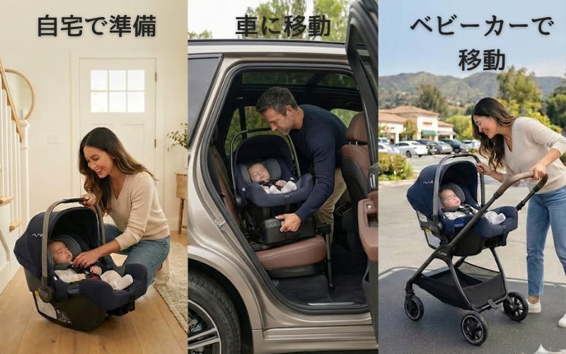 寝たまま運べる「魔法のシート」で、赤ちゃんを一度も起こさず、車からベビーカー、そして家の中へ。