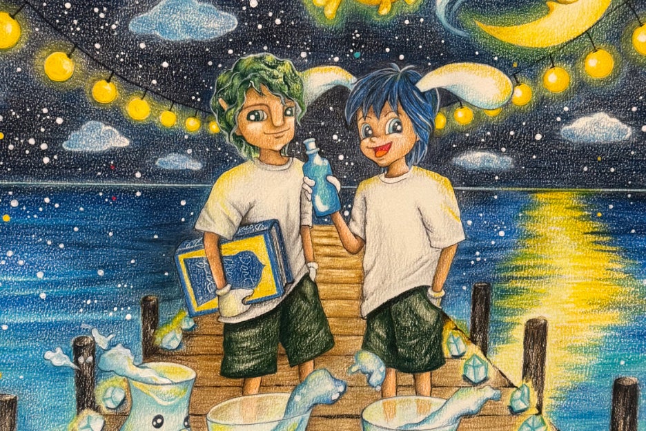 この絵本は、私の息子たち“タク”と“トーイ”の夏休みの姿をモデルに、妖精の国での冒険として描いた物語です。