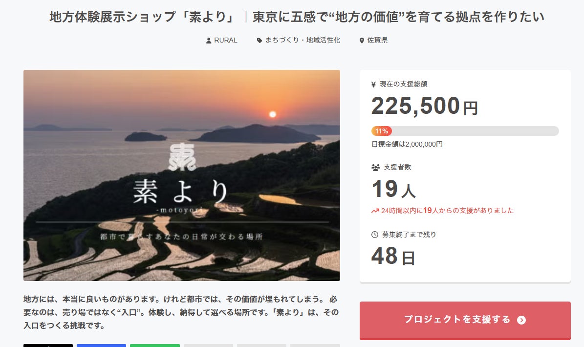 昨日20時の公開から、丸一日が経過しました。 この24時間で、19名もの方々にご支援いただき、現在225,500円(達成率11%)を突破いたしました!