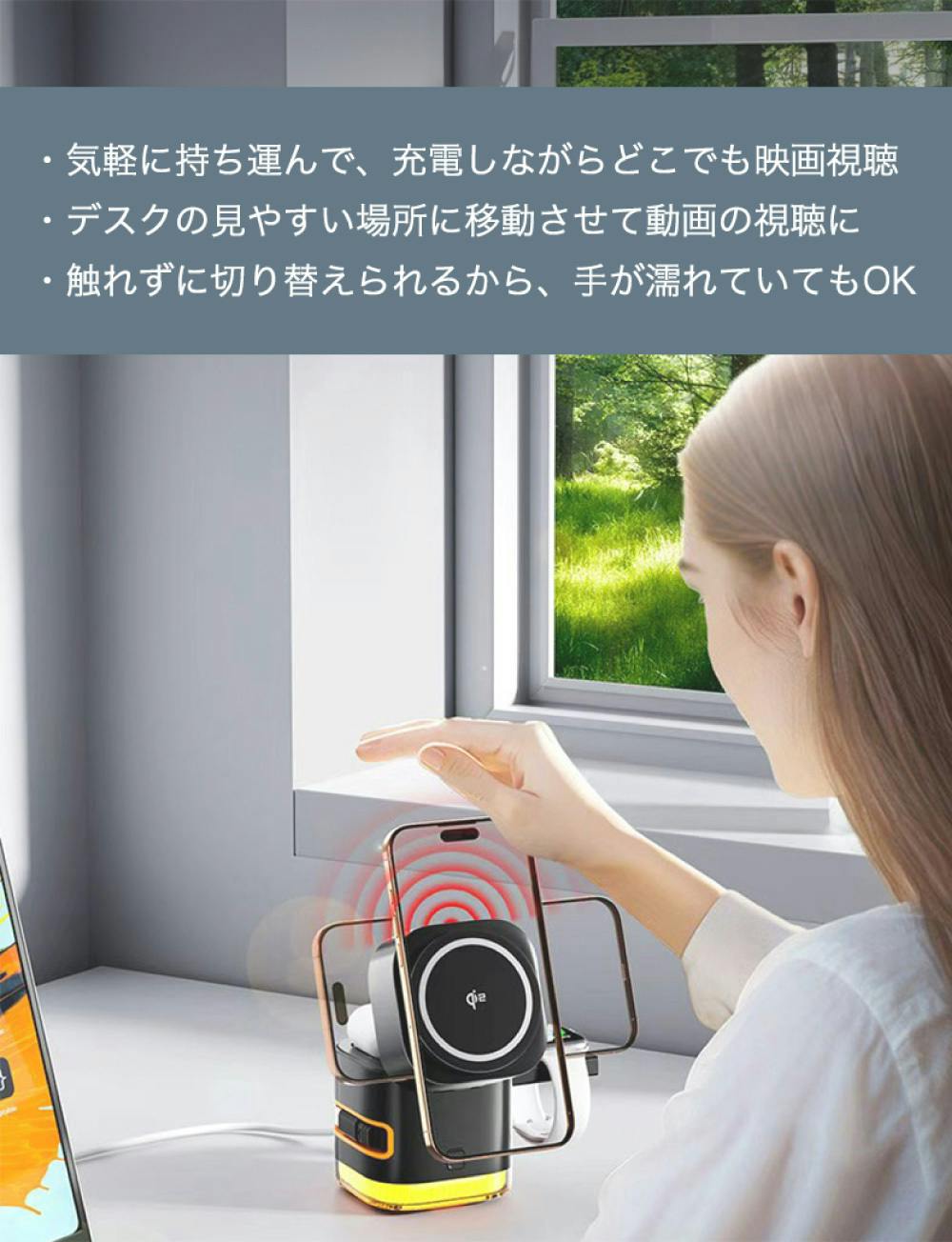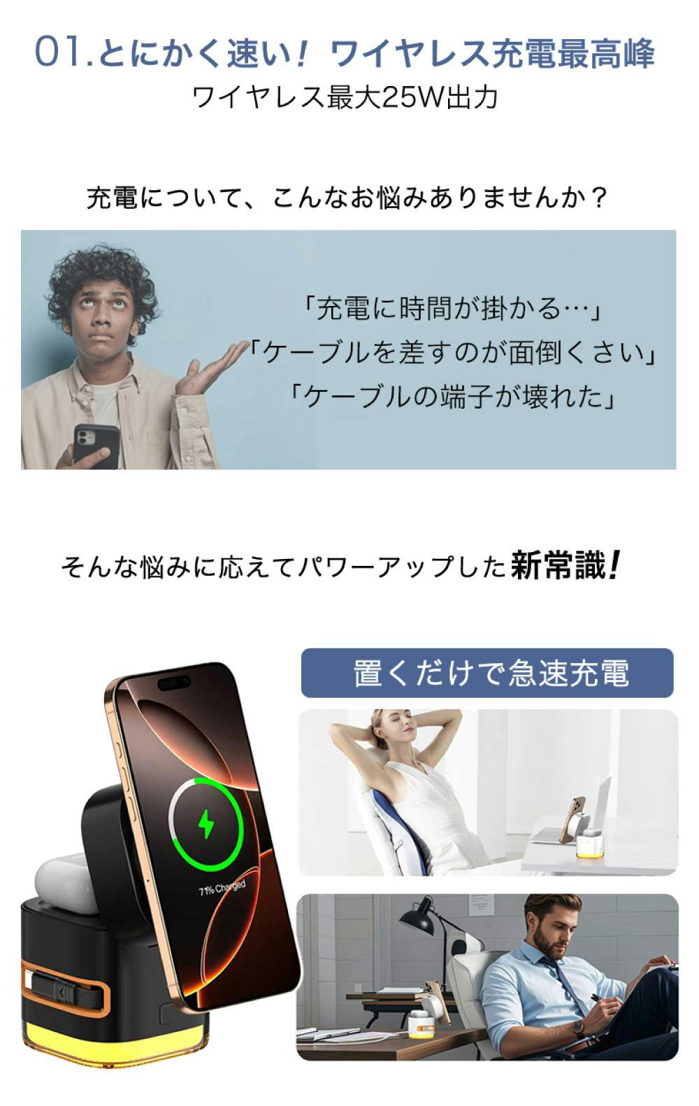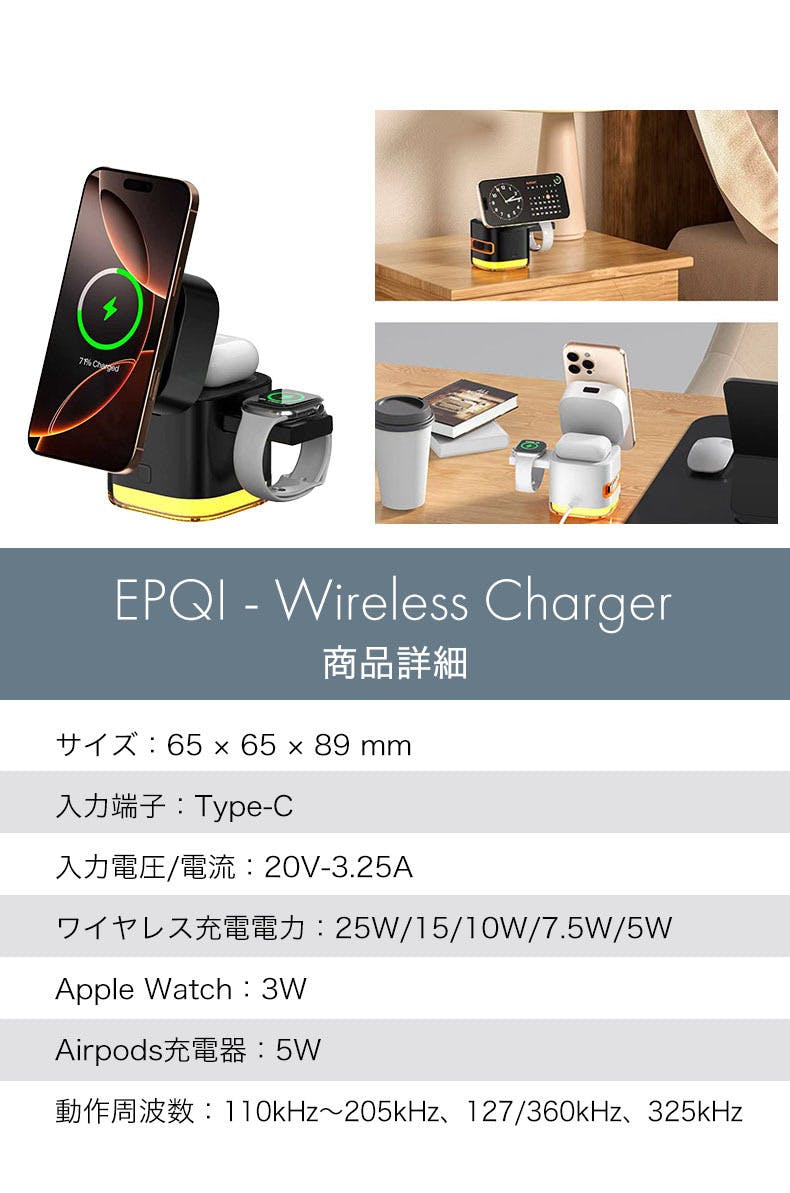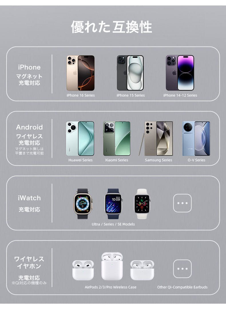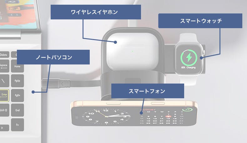 スマートウォッチも、ワイヤレスイヤホンも、" ただ置くだけ "で、充電が可能です。