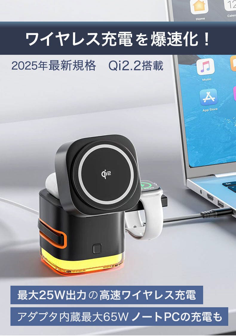 ・スマートウォッチ:25W出力ワイヤレス充電