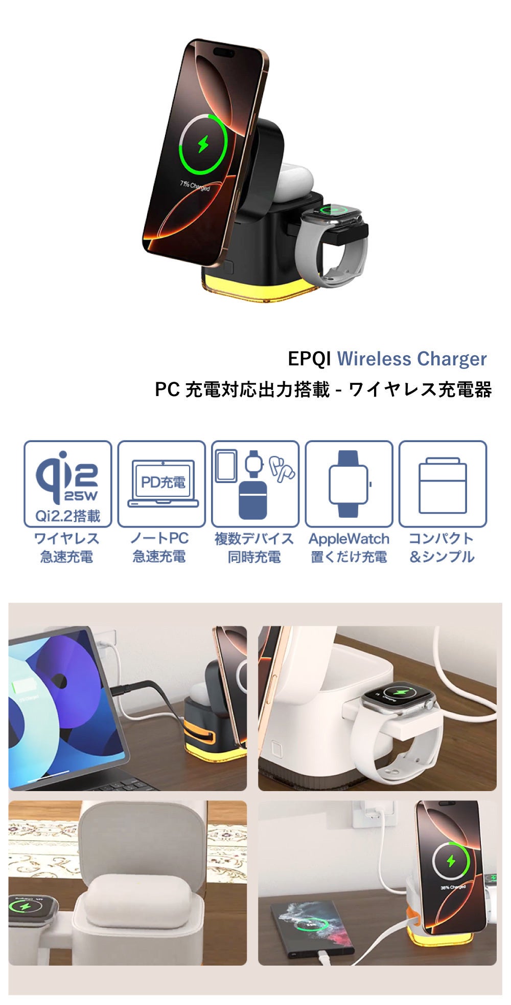 EPQIは、Apple Watchなどのスマートウォッチや、Airpodsなどのワイヤレスイヤホンの充電も、超急速ワイヤレス充電を可能にしました。