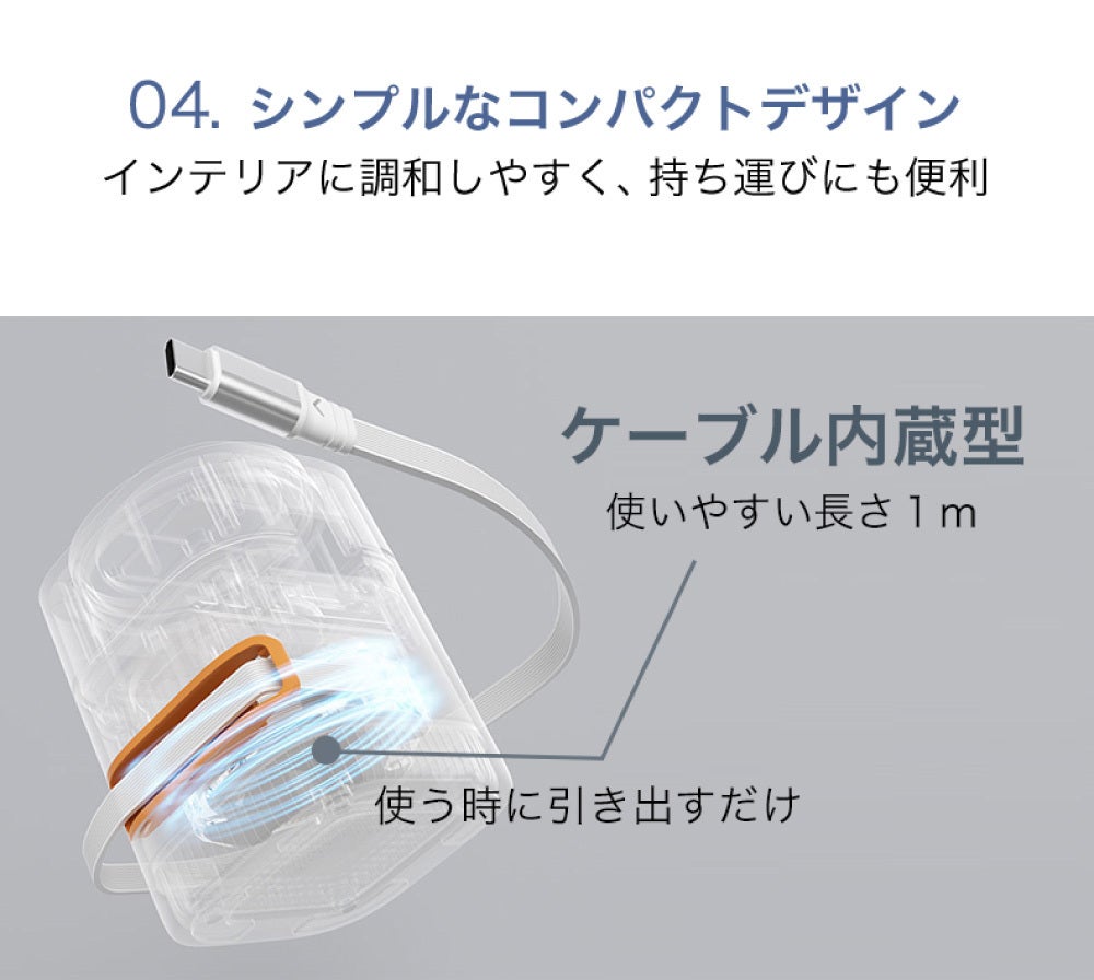 EPQIは、ワイヤレス充電だけではなく、最大65W出力が可能なケーブル型のPD充電機を内蔵しています。