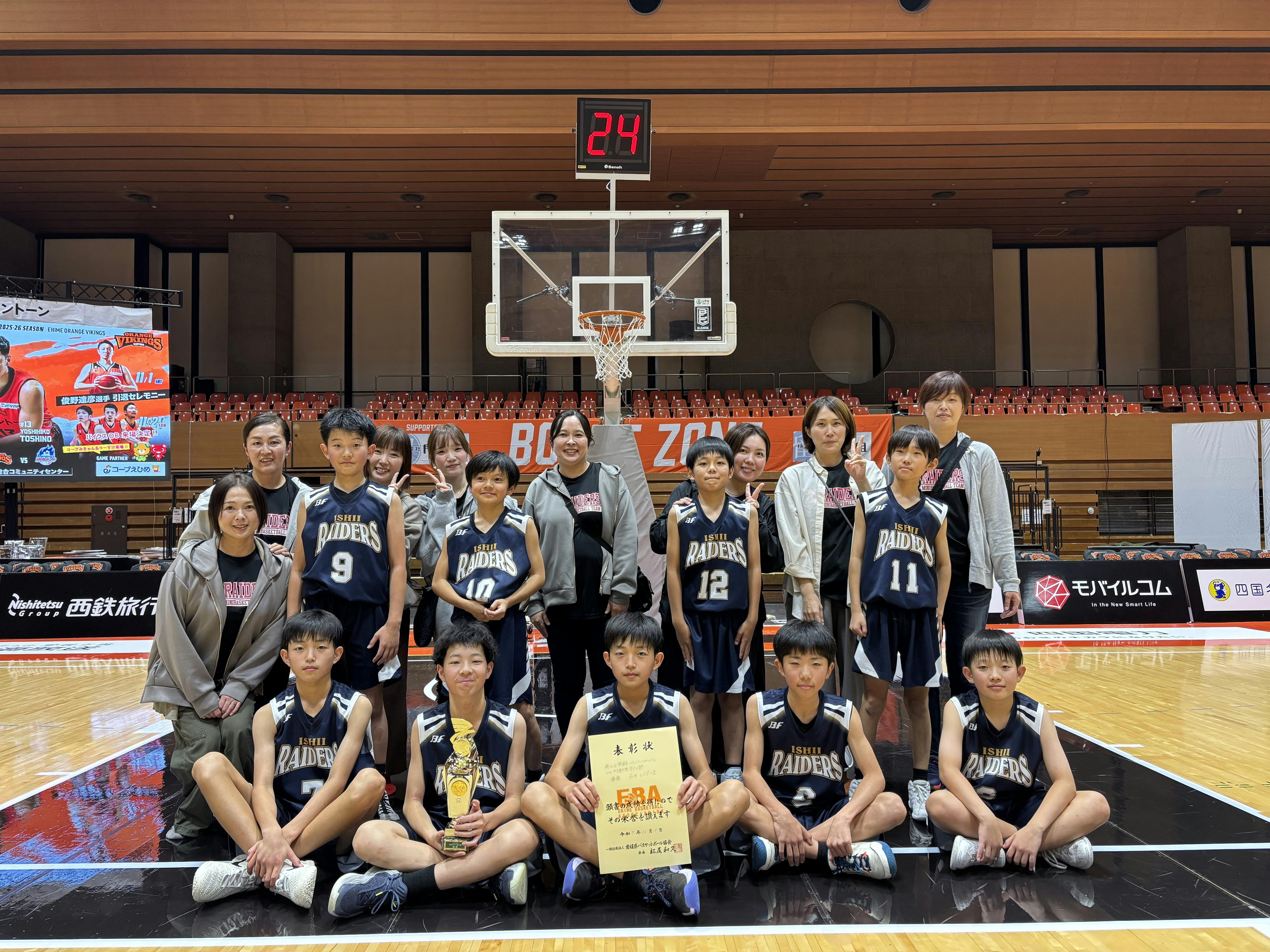 私たち石井レイダースは、2025年8月に広島で開催されました全関西ミニバスケットボール交歓大会に、創設以来初の愛媛県代表として出場しました。その際にもたくさん寄付金のご協力をいただき、活動費として使わせていただきました。