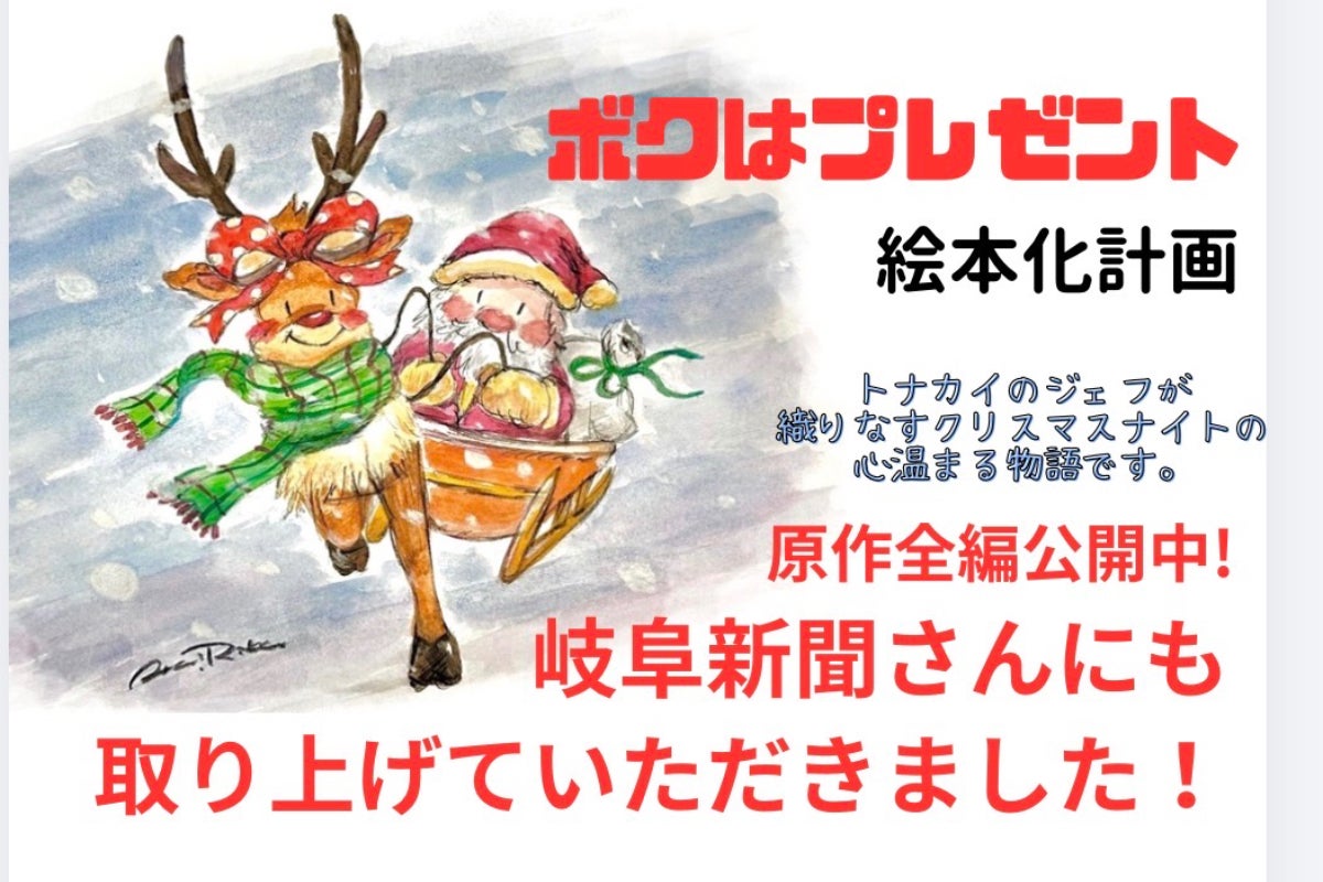 ぽん石山が原作となる『僕はプレゼント』を書き上げたのは今から2年前の事です。4000字ほどの短いもので、大人向けの童話として完成させました。ただ、いずれ子どもも楽しめる絵本にもしたいと思い続けていました。原作のテイストを残しながらも、わかりやすく夢いっぱいの作品をと考えていたのです。そんな時にインスタ仲間を通じて知り合ったのがことば絵作家として活躍している新井理玖でした。新井は以前より、絵本を描いてみたいとの思いがあり、二人はやり取りしているうちに絵本化のプロジェクトを思いついたのでした。