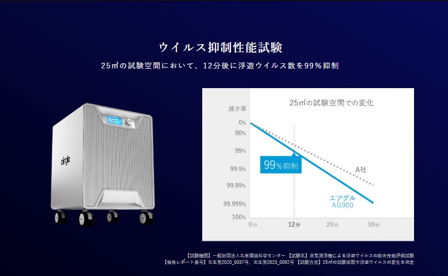Airgle空気清浄機は、国内外の医療機関を中心に400万台以上が導入されており、その確かな性能と信頼性が高く評価されているブランドです。