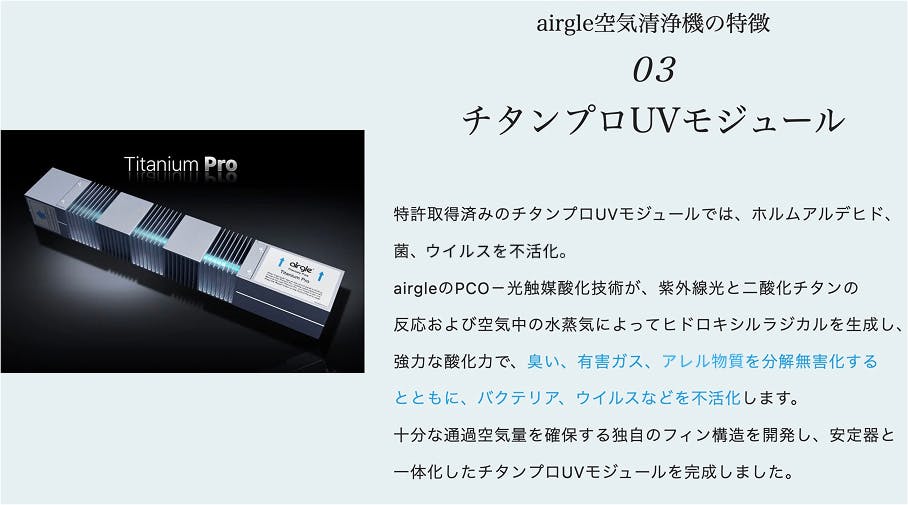 特許技術のチタンプロUVモジュールがウイルスを“不活化”