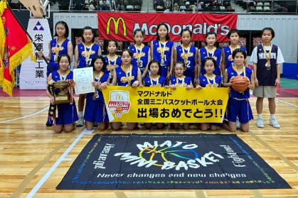 こんにちは。奈良県の「都跡(みあと)ミニバスケットボールスクール」女子チームです。