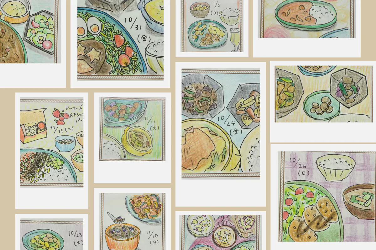 私は趣味で、その日の献立をイラストにしてノートにコレクションをしています。