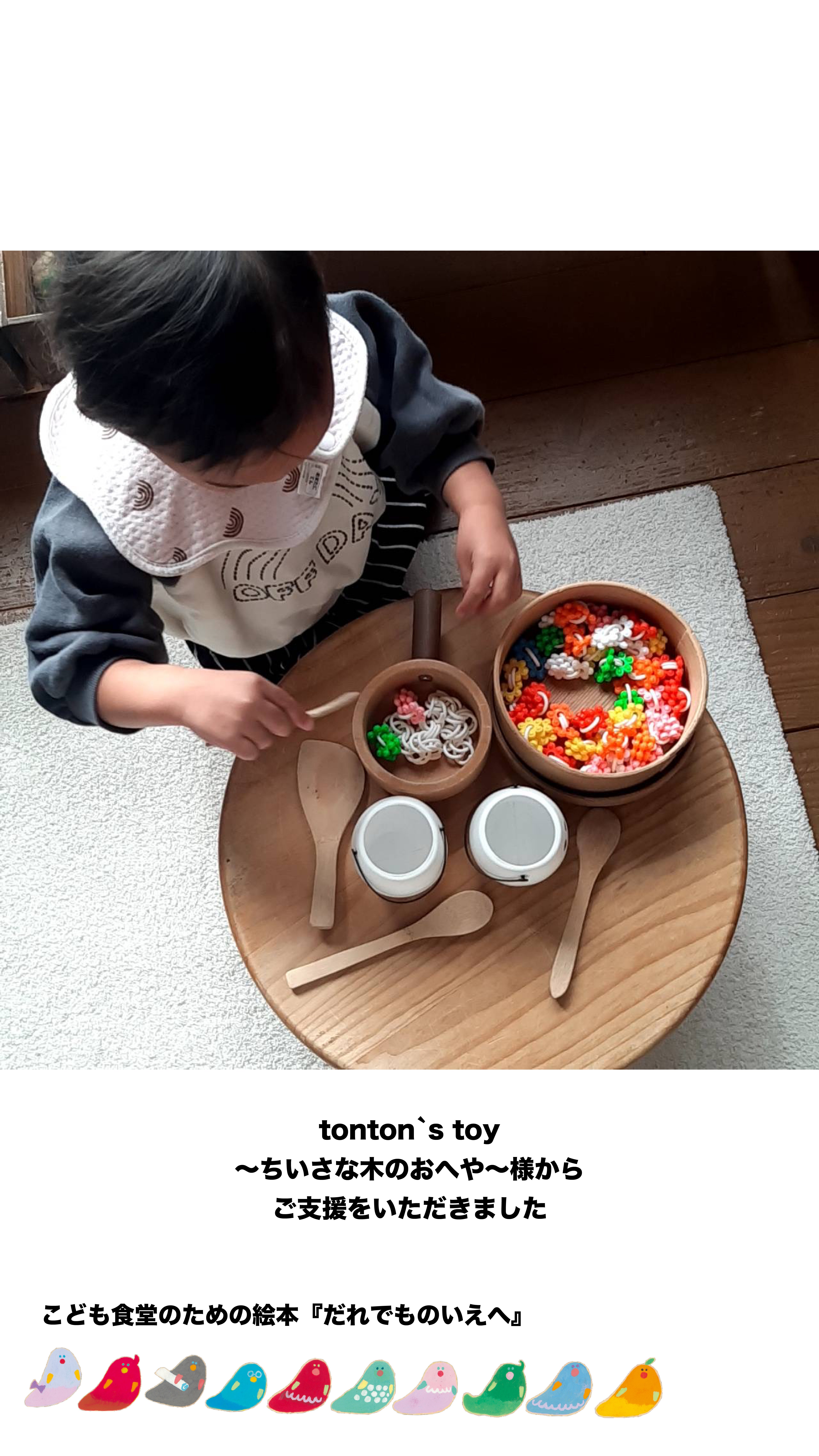 そしてゆっこさんは、やがてこどもたちと家族を応援する『tonton`s toy〜ちいさな木のおへや〜』、そして『みんなで食べる赤ちゃん食堂』を運営するようになりました。