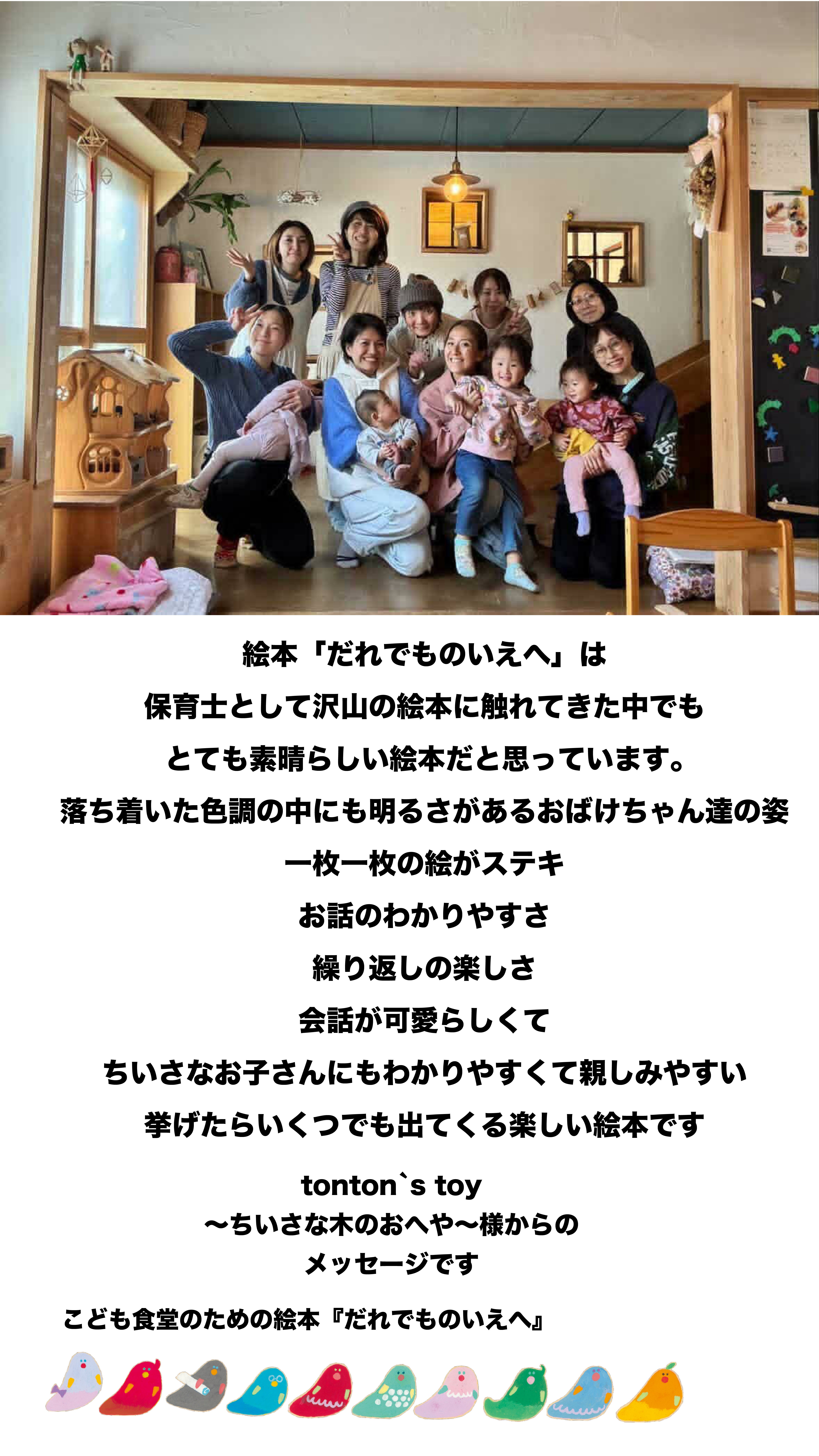 地域を作る大人の一人としてこの絵本を皆さんに知っていただき、子どもたちの未来のためにご支援を頂きたいと思います。