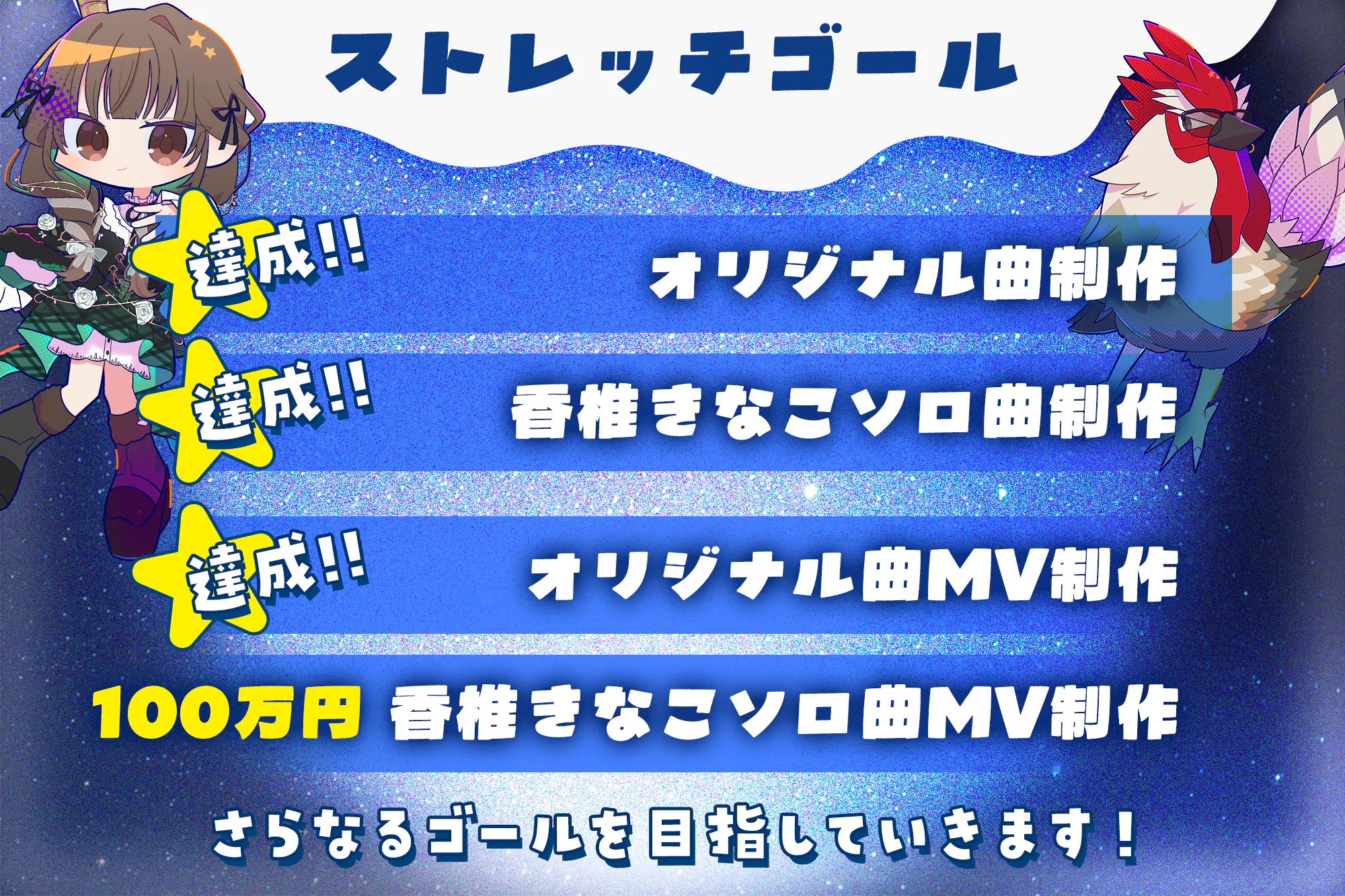 2026/02/27 18:302/1(日)から始まったクラウドファンディングですが、3/1(日)で終了します。とても多くの方に支援していただき感謝しております。そして、その結果「ただ曲を作る・MVを作る」だけではない展開へと進んでいくことになっており、雑誌やカラオケなどで展開することも決まりました。そして、本日19時に最後のストレッチゴールの発表をします。とても驚きの内容になっていると思います。今回はYouTubeプレミア公開にしましたので、お時間ある方はコメントで率直な感想を書いていただけたらと思います。 もっと見る