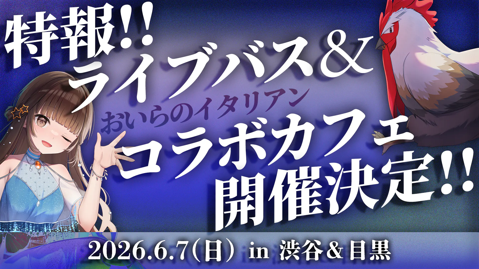 6/7(日)は1日で渋谷で「ライブバス」→渋谷で「ビジョン」観覧→目黒で「おいらのイタリアン」コラボカフェと満喫できます!