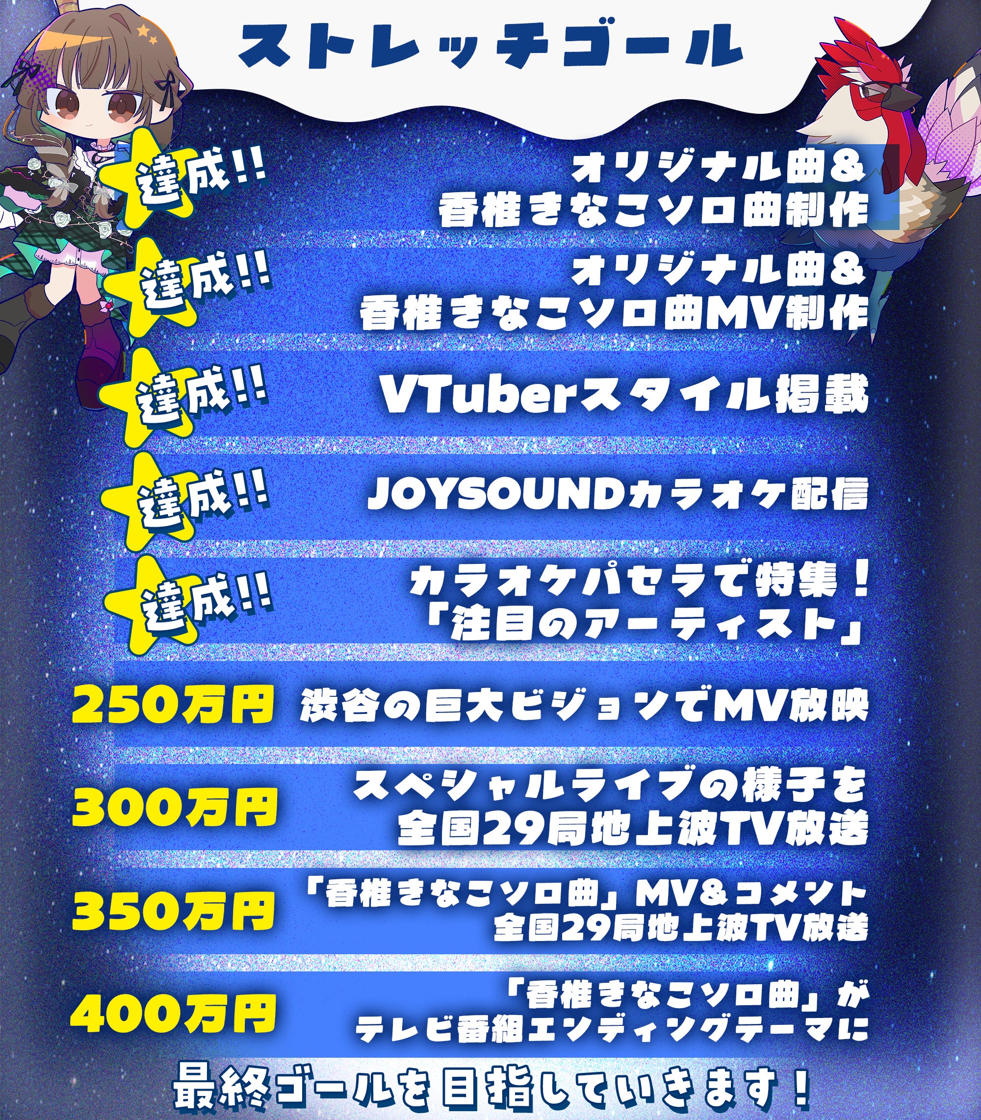 そして250万円到達で「渋谷の巨大ビジョンでMV放映!」です。