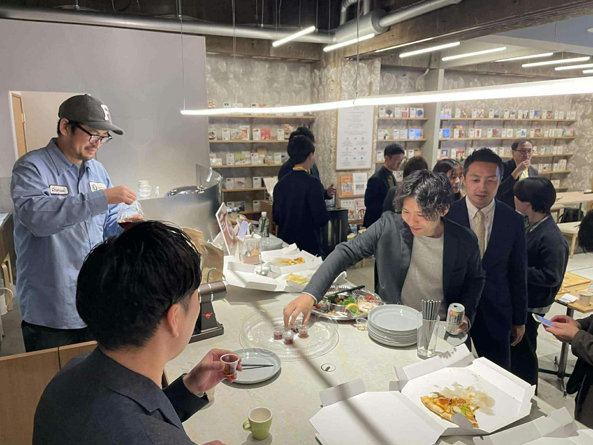 ピッチ後の懇親会にて弊社の発酵珈琲をご試飲いただきました。