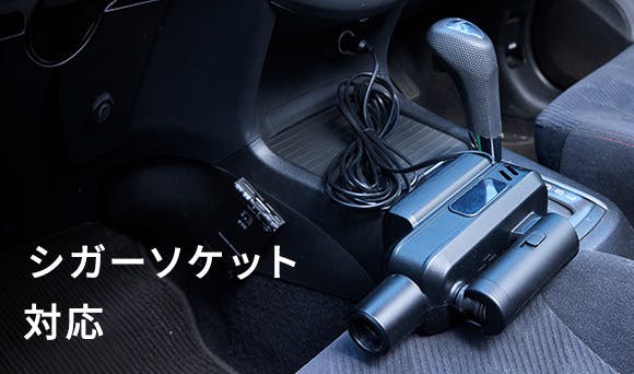 付属の5m DCケーブルで、車のシガーソケットからの給電に対応。屋外作業やアウトドアでも、バッテリー残量を気にせず長時間の連続使用が可能です。