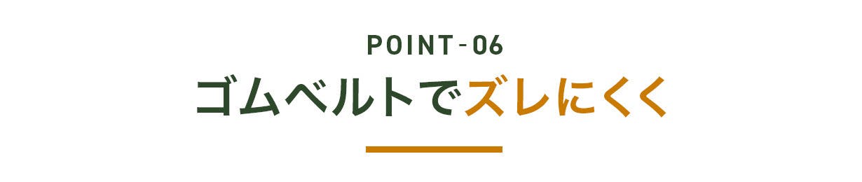 柔らかく伸縮するベルトがやさしくフィットしてズレにくさをUPしています。