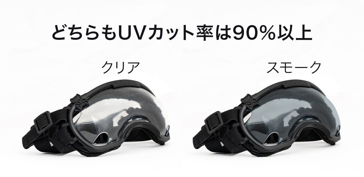 透明なクリアレンズだけでなく、人用のサングラスのようなスモークレンズも漏れなく付いてきます!