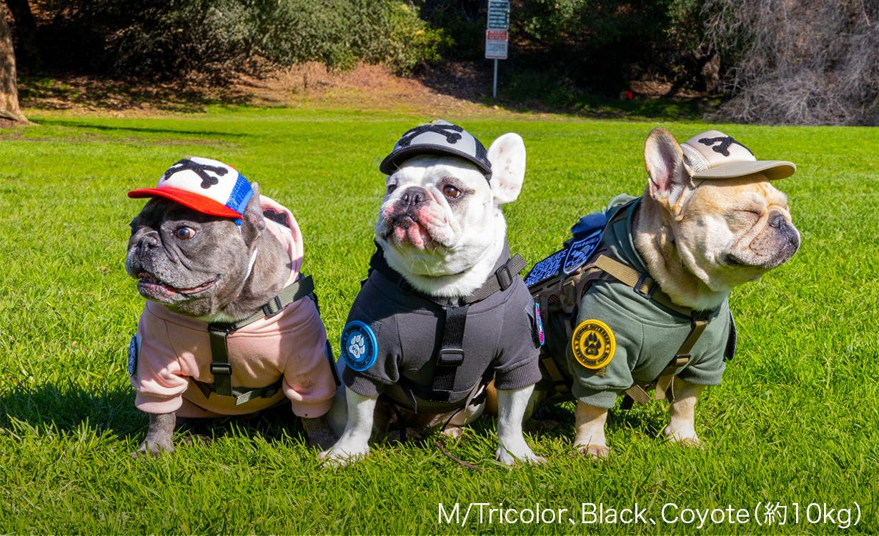 アメリカ西海岸・ロサンゼルスで誕生し、ミリタリーやアウトドアの機能性・耐久性・美学を背景に、家族である犬たちのための装備を開発してきました。