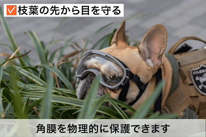 目の保護が必要な子、お散歩やアウトドアが大好きな子、やんちゃな子。