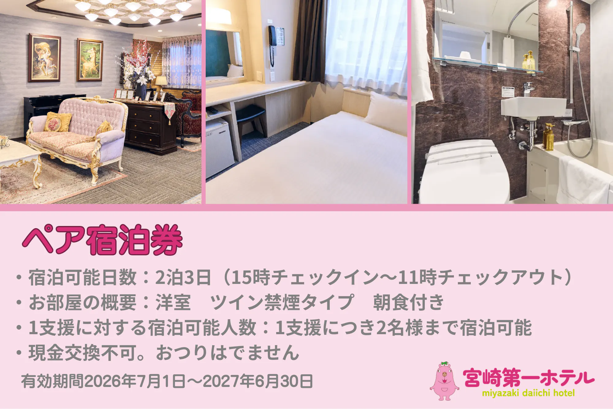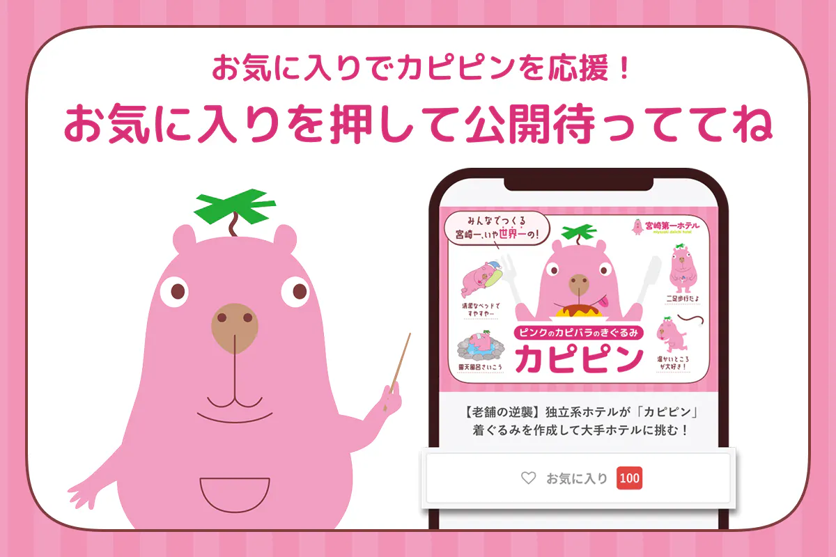 宮崎第一ホテル公式キャラクターピンクのカピバラ「カピピン」