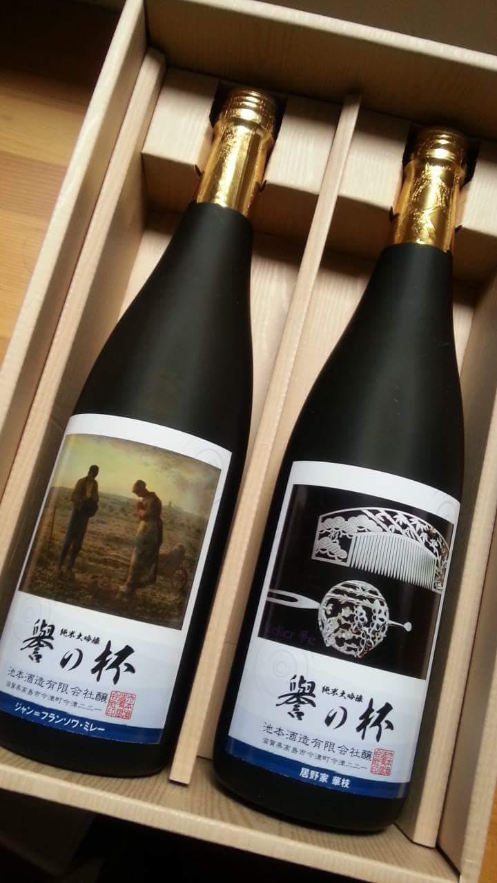 写真は、2014年9月にライスワイン(つまり日本酒)のアートラベルに、私の制作した『松竹梅 櫛&平打ちかんざし』が選ばれました。写真右側。このラベルは、2014年より、パリ16区のワイン博物館に永久収蔵されています。