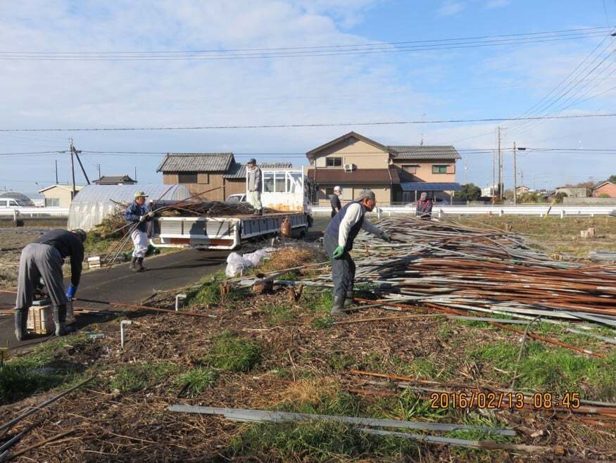 イチゴハウスで使用していた骨組みも皆さんの手で解体