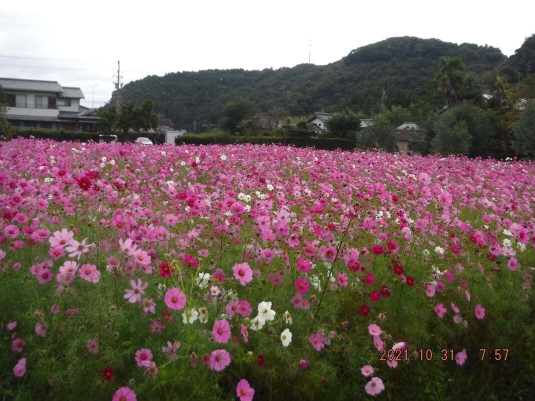 秋には綺麗なコスモス畑に。