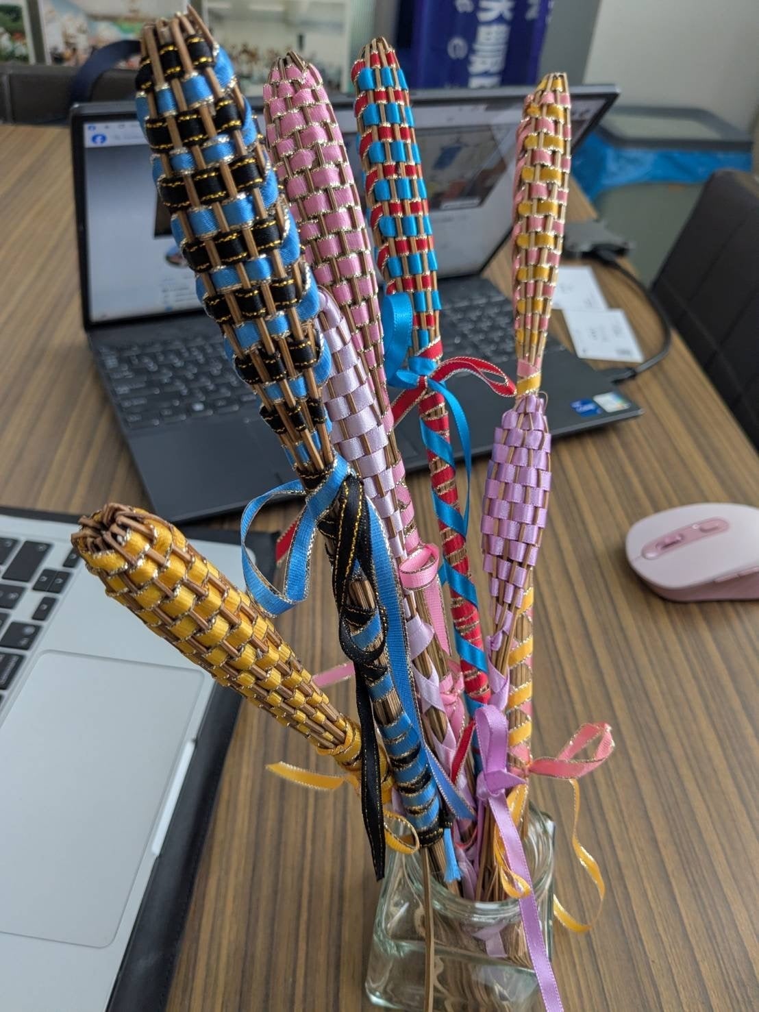 ラベンダースティック: 温暖な地域では栽培が難しいとされるラベンダーを見事に育て上げ、リボンで編み込む「バンドルズ」も作成。当初は2時間かかった作り方も今では15分で作れるほどになり、ワークショップを通して皆さんに楽しんでもらっている。