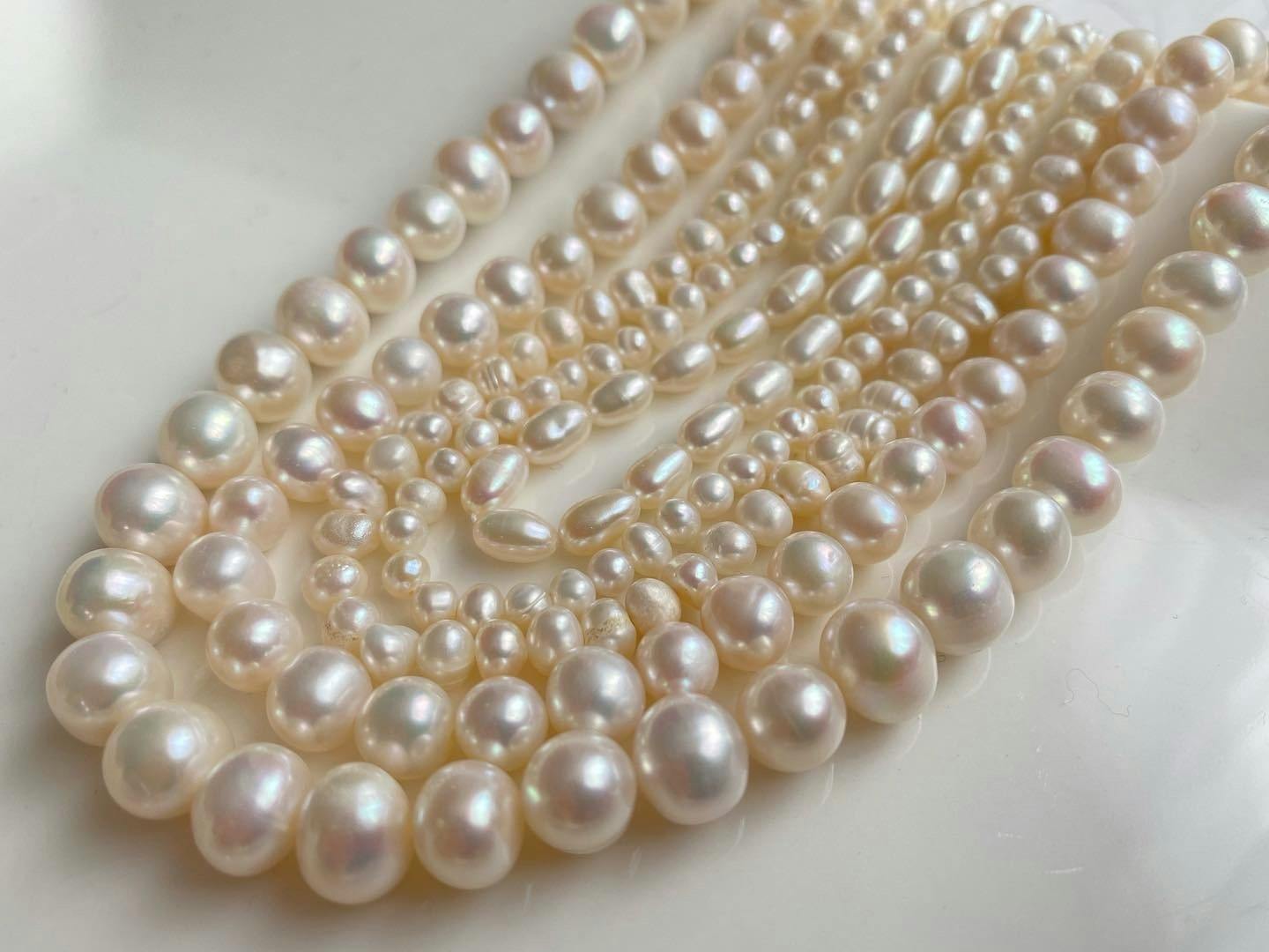 特に淡水パールは、自然の美しさを持つ素材であるので、ひとつひとつ照りや艶が変わってきます。