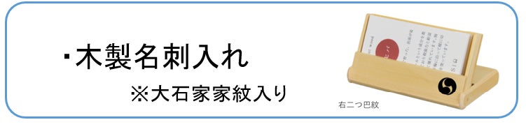 ・ランタンと提灯ランタンの参加券のほか、イベント会場の大石神社オリジナルご朱印状、大石家家紋入りのオリジナル木製名刺入れなどご用意いたしました!