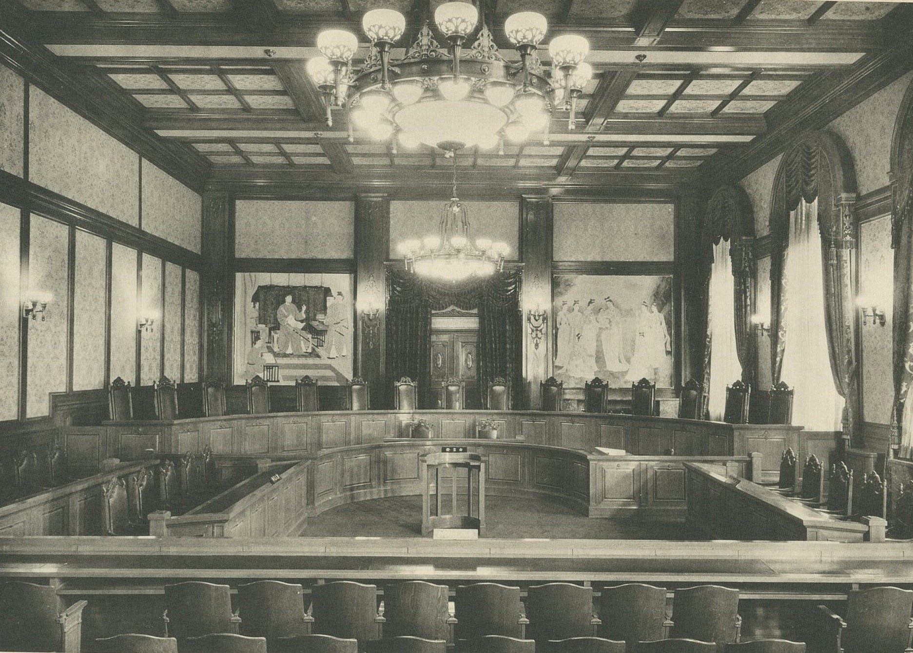 堂本印象は、最高裁判所大法廷に飾る巨大壁画を制作しています。