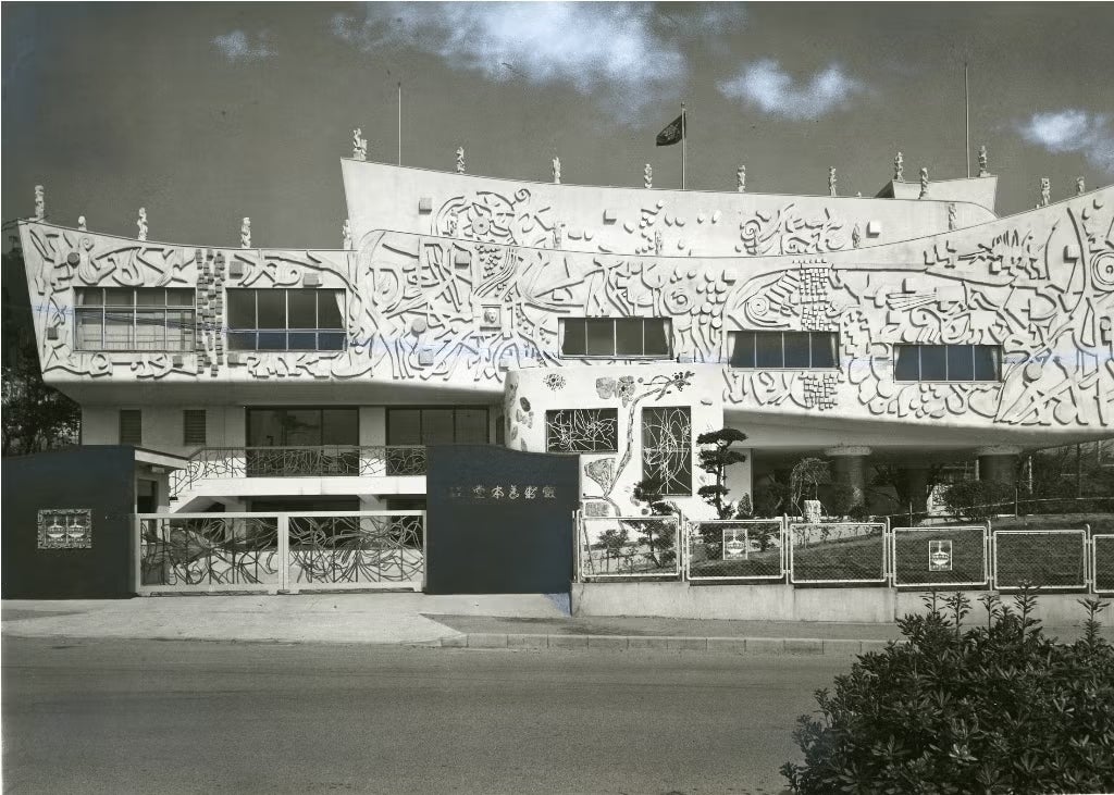 Remarkably, he designed everything himself—from the exterior and interior to the furniture and lighting. Drawing on his experiences touring European palaces and art museums, he created a building characterized by flowing lines that echo the ridgeline of Mt. Kinugasa and abstract reliefs covering the entire exterior wall.