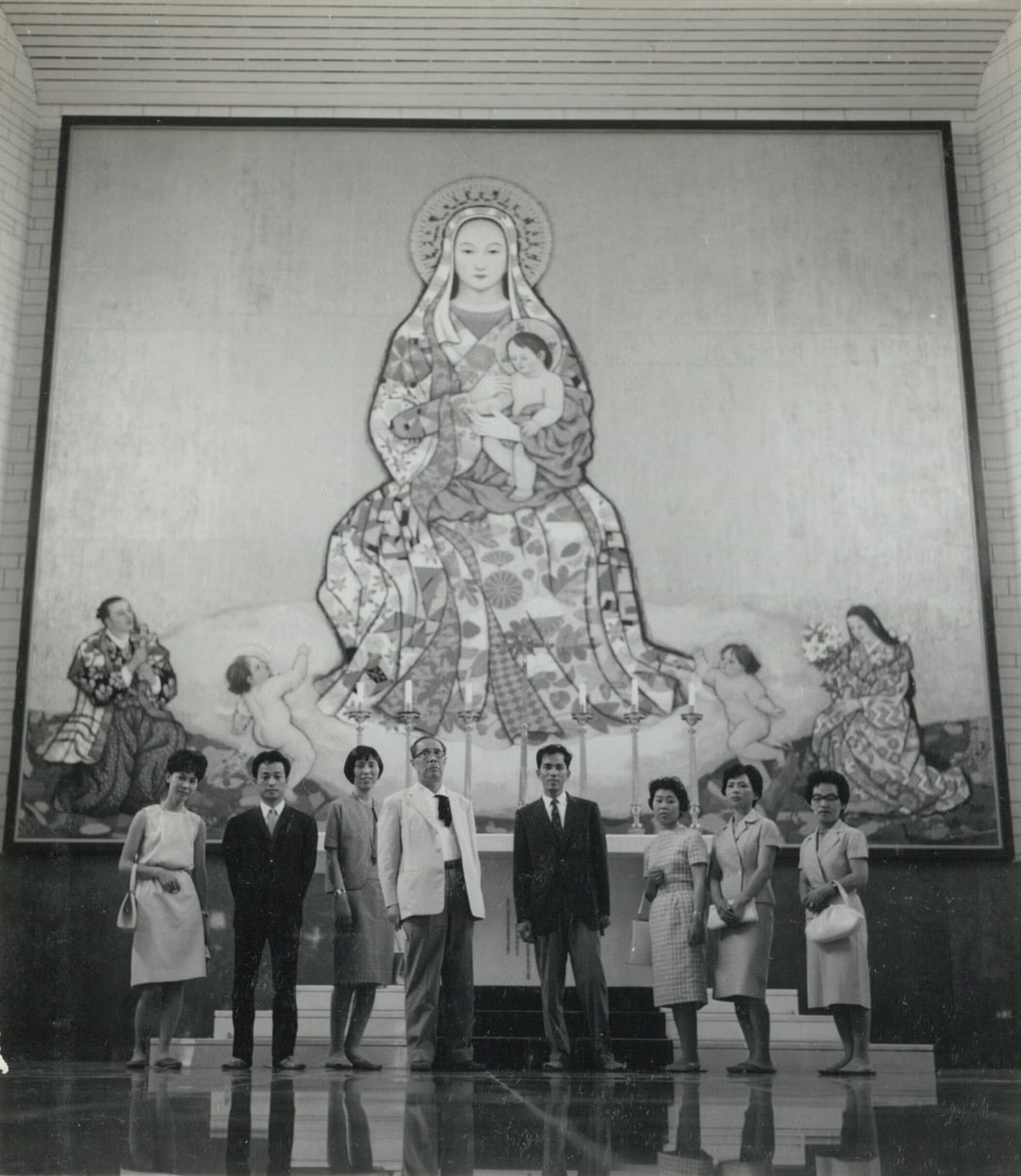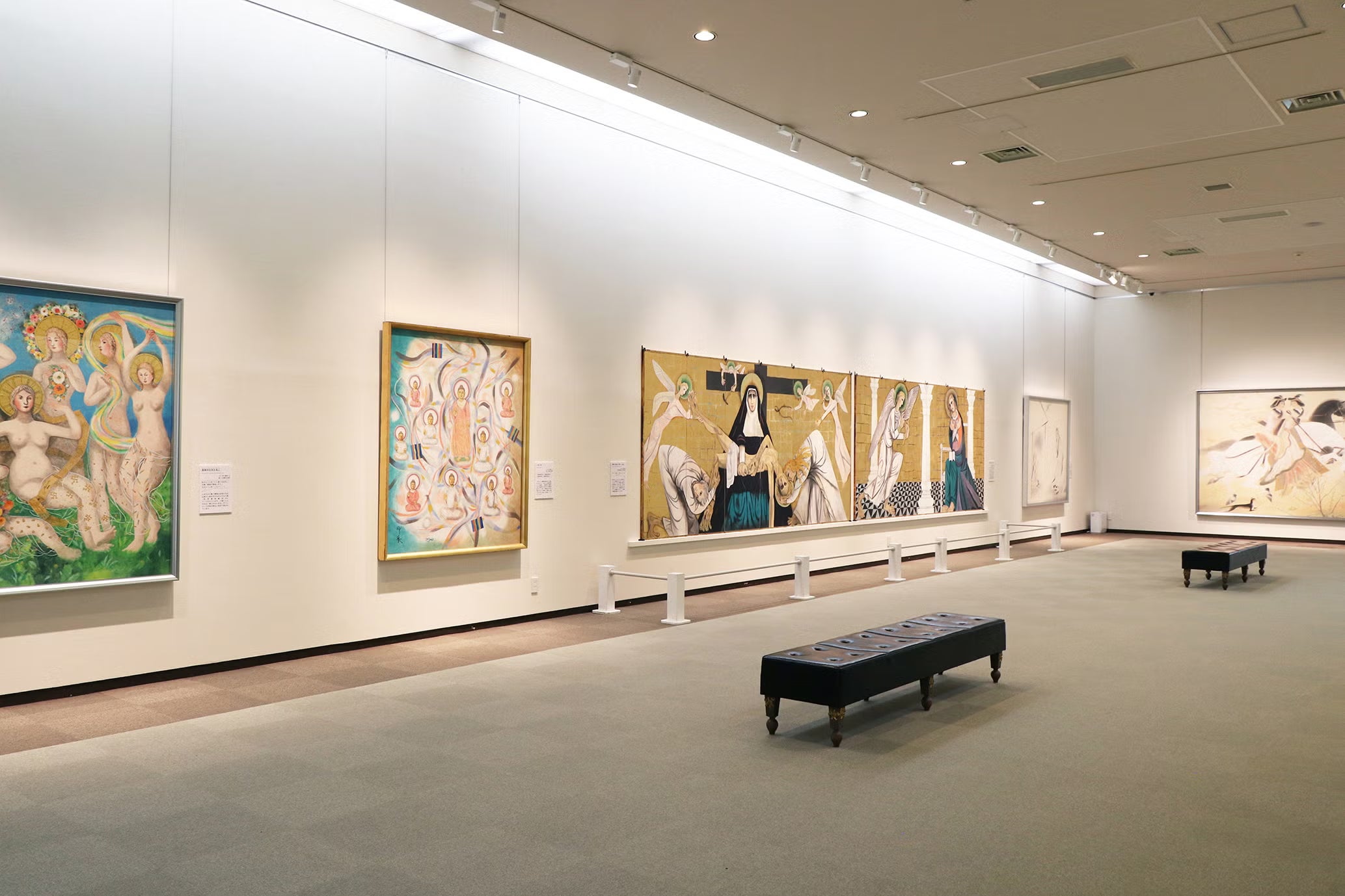 Throughout his life, he continued to challenge himself creatively. He created numerous murals for public buildings such as temples, shrines, and churches—including the Great Pagoda (Konpon Daito) at Mount Koya and the Great Hall of the Supreme Court—and his works continue to move the hearts of many people to this day.