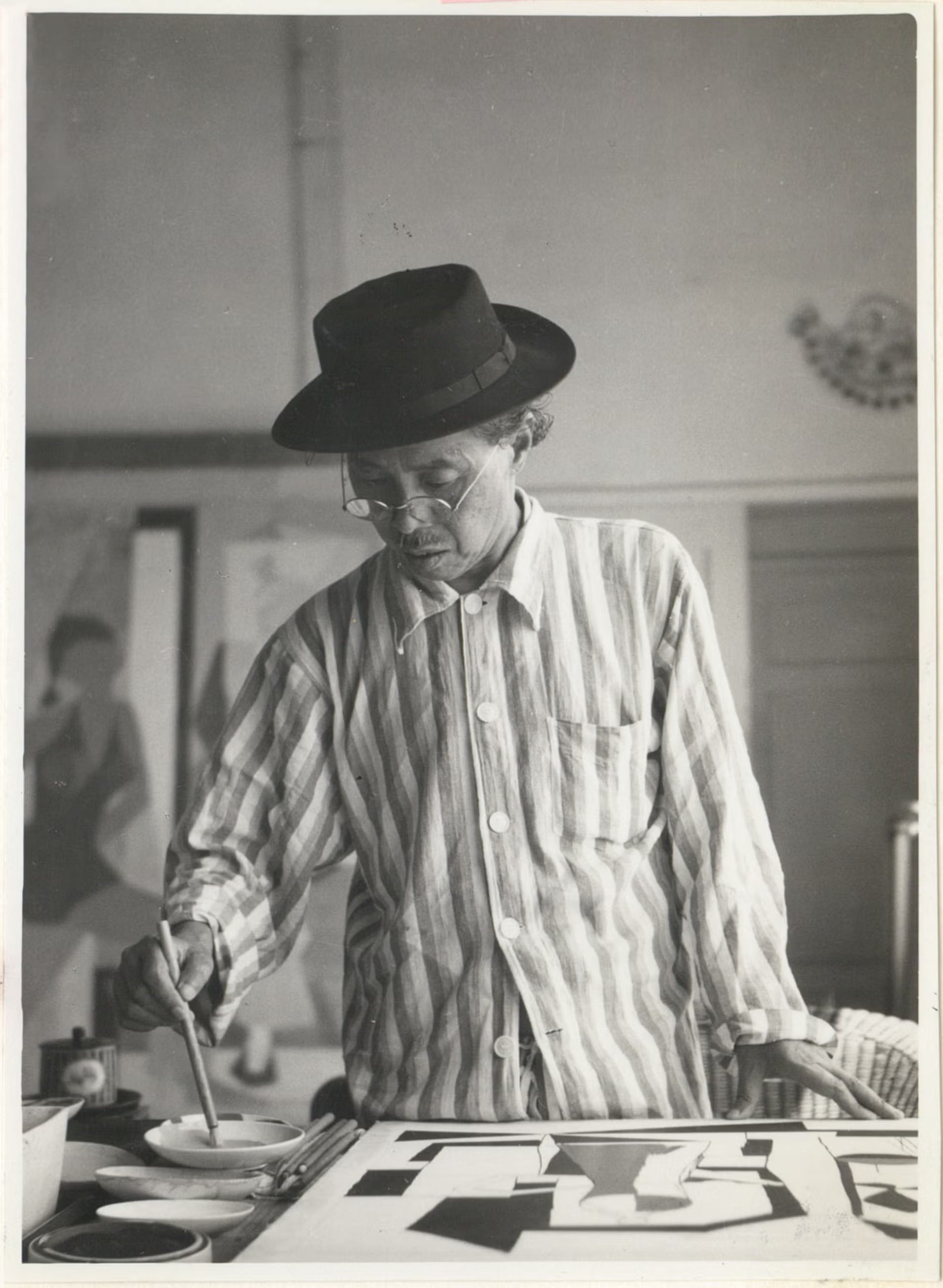 Commissioned to create a large mural for Japan's highest court, he established a dedicated studio for this monumental project.