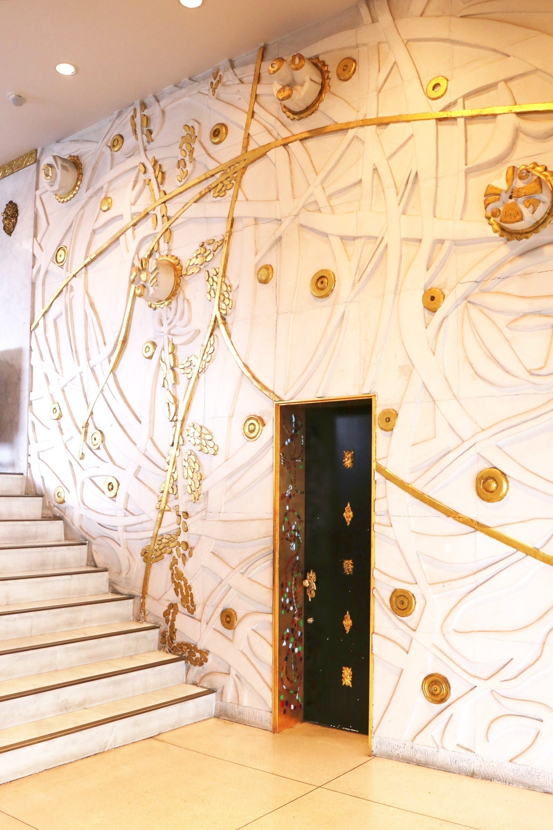 白と金色の装飾を施した扉や壁、タペストリーや案内板、彫刻や染織、陶芸など日本画の枠を超え創作に取り組んだ印象の集大成であり、まさに「建物そのものが作品」と呼ぶにふさわしい唯一無二の空間を生み出しました。