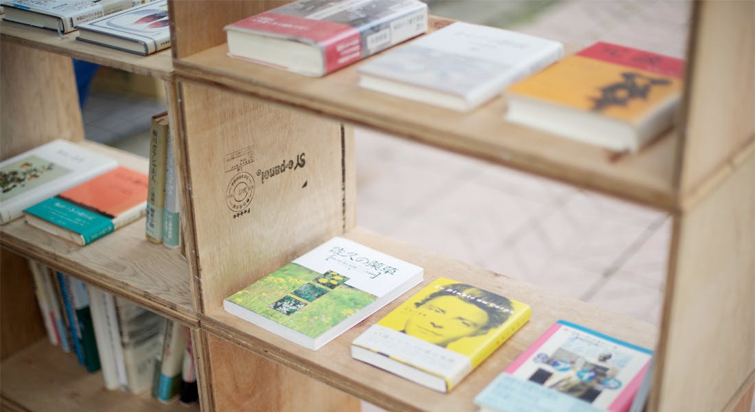 小金沢幸司の移動図書館「山羊の詩」。毎回モーニングマーケットに出店してもらっています。今回はリターン品として1冊、ブレイクタイムSetに選書してもらいます。TELTのブックスペース担当として、一緒に企画に参加してくれています。