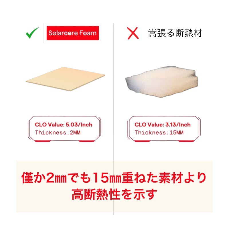 たった2mmのSOLARCORE Form(Sc_Foam)は際立った性能を示します。