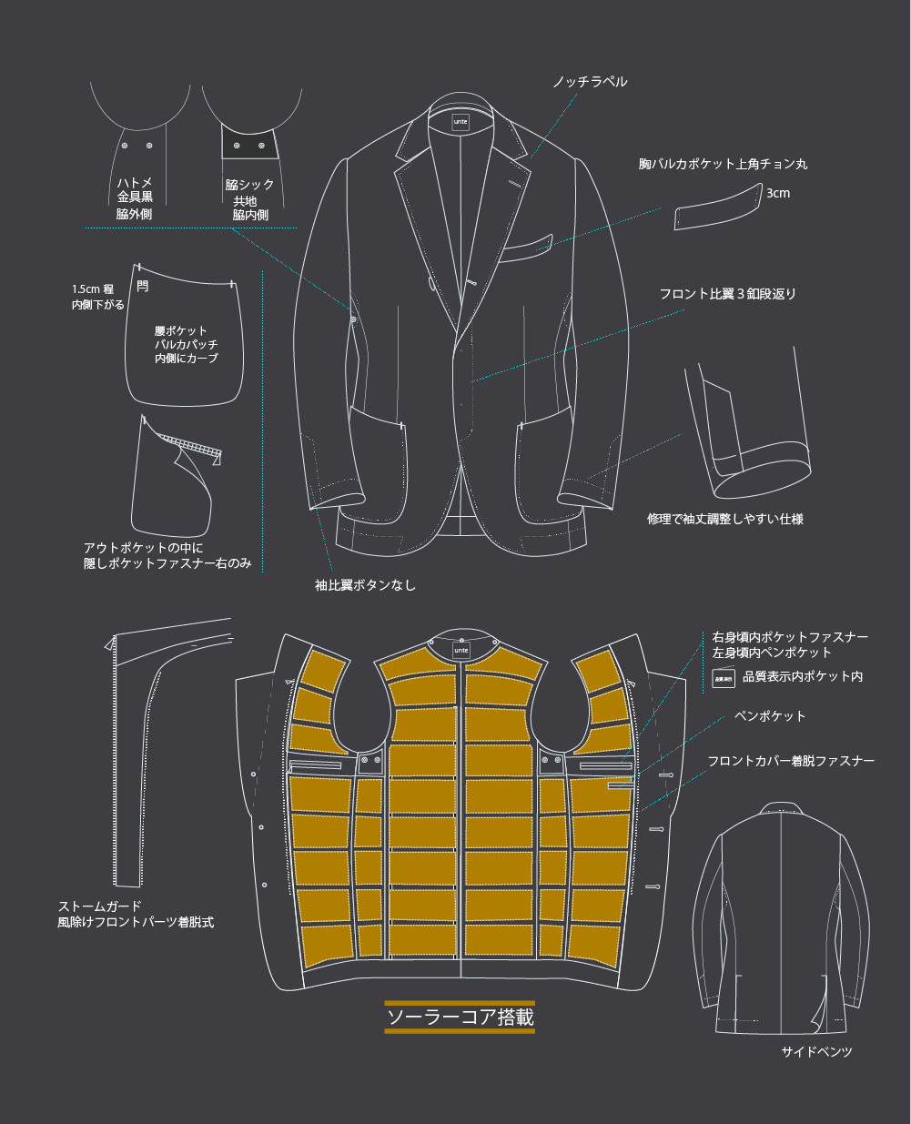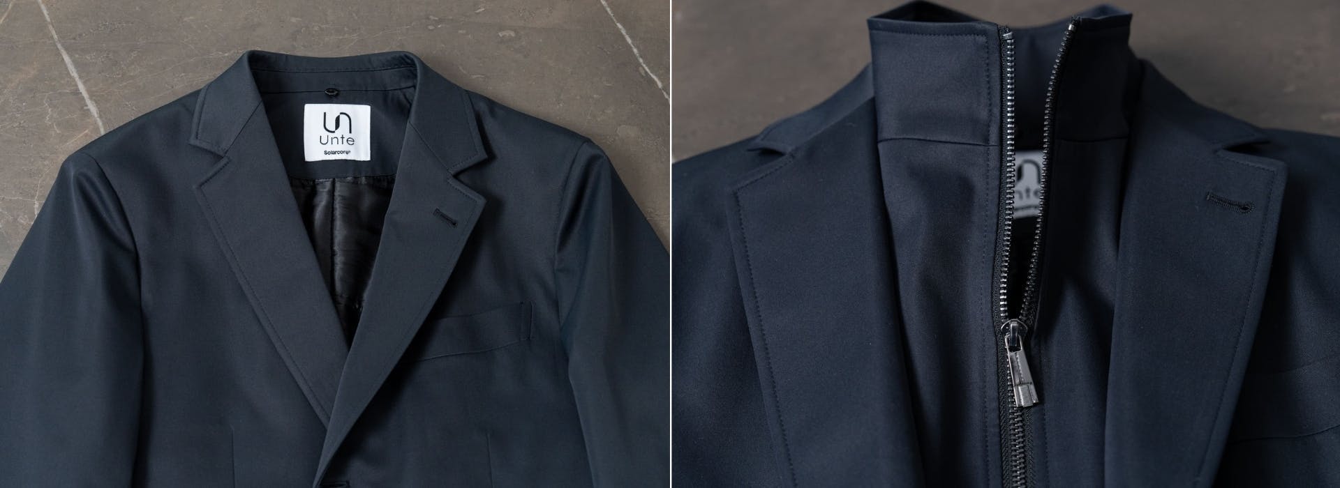 先端テクノロジーと熟練の仕立て技術を融合させたUNTE Urban Jacketは、まさに両社の知見が詰まった一着です。