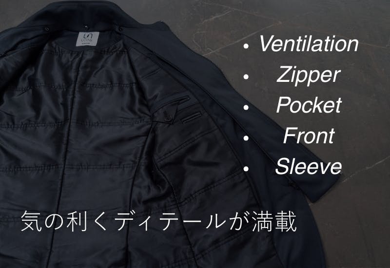 UNTE Urbanジャケットでは、このようなテーラードジャケットの根本的な課題を解決する設計を施しました。