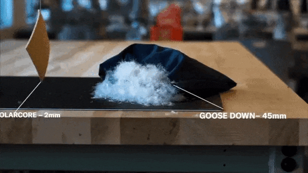 SOLARCOREはエアロゲル断熱技術を応用した素材で、軽量ながら優れた熱保持性を実現します。極寒の‐40℃環境でも保温性を維持し、従来の断熱材に比べて薄く、動きやすさと快適性を両立できる画期的な高性能断熱素材です。