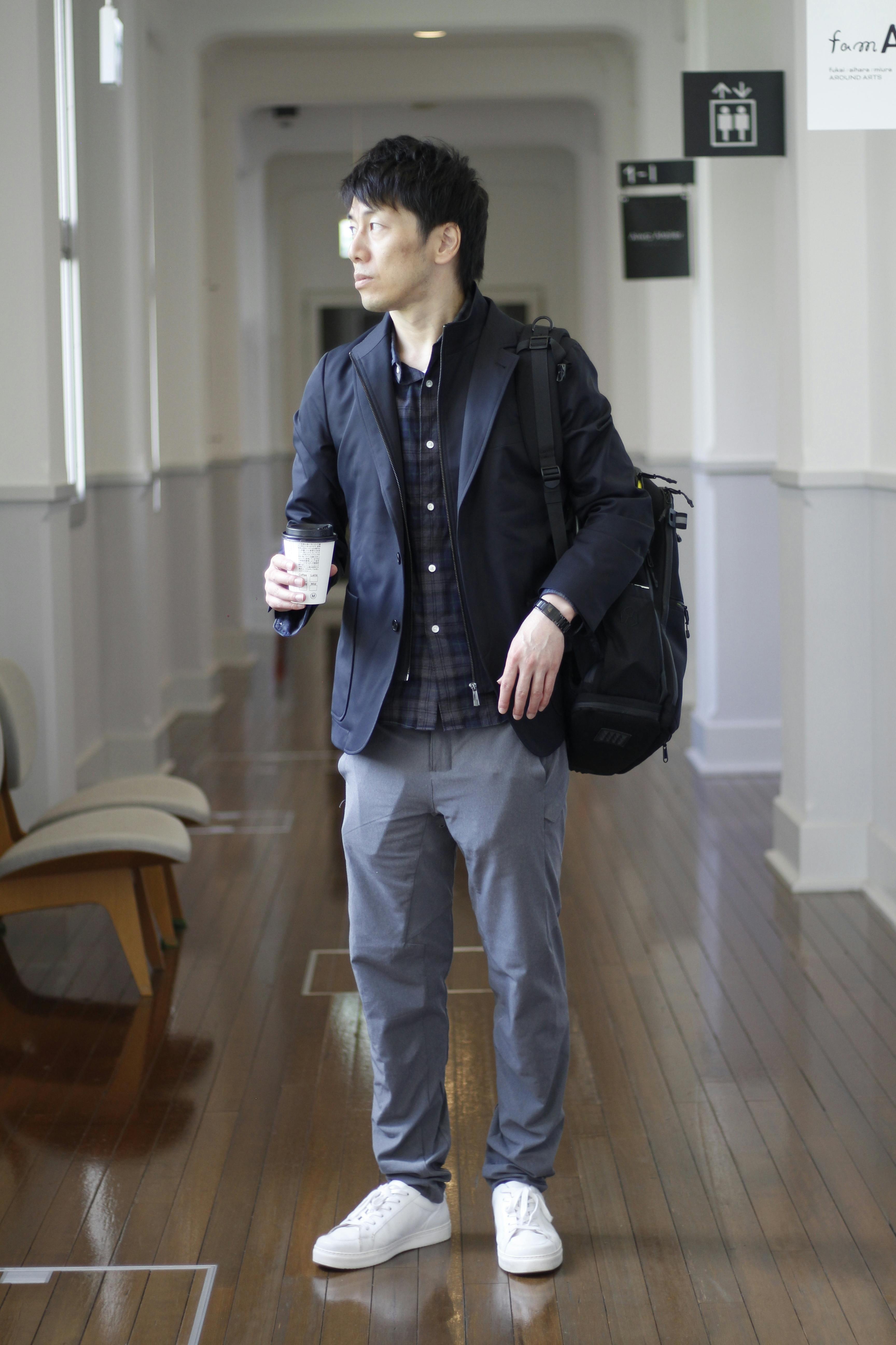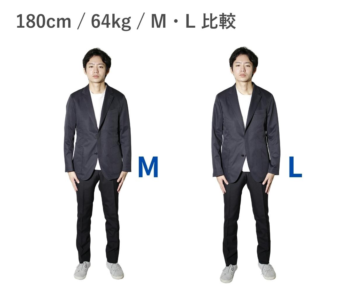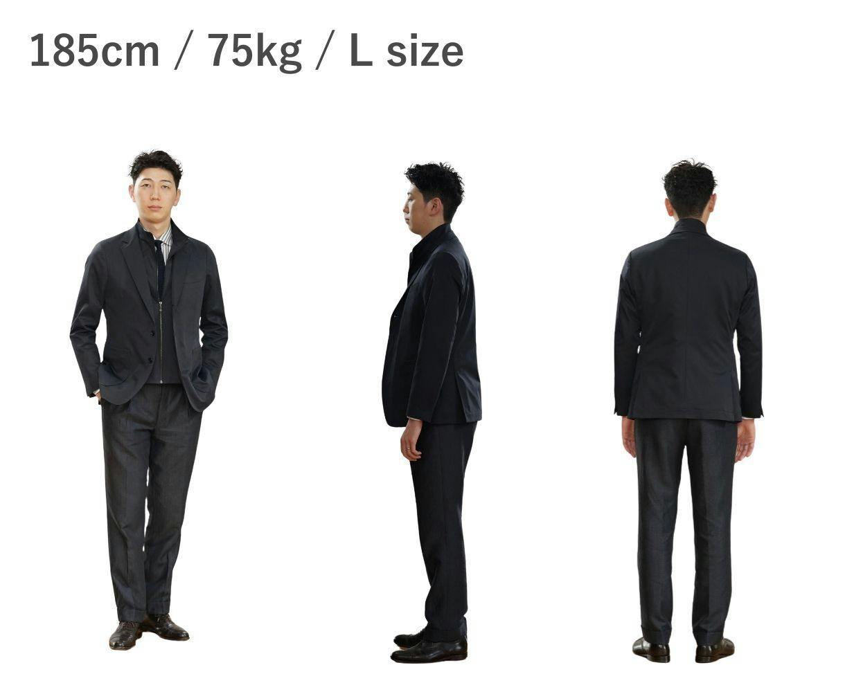 Model:177㎝, 63kg, ジャケット:M, パンツ:S