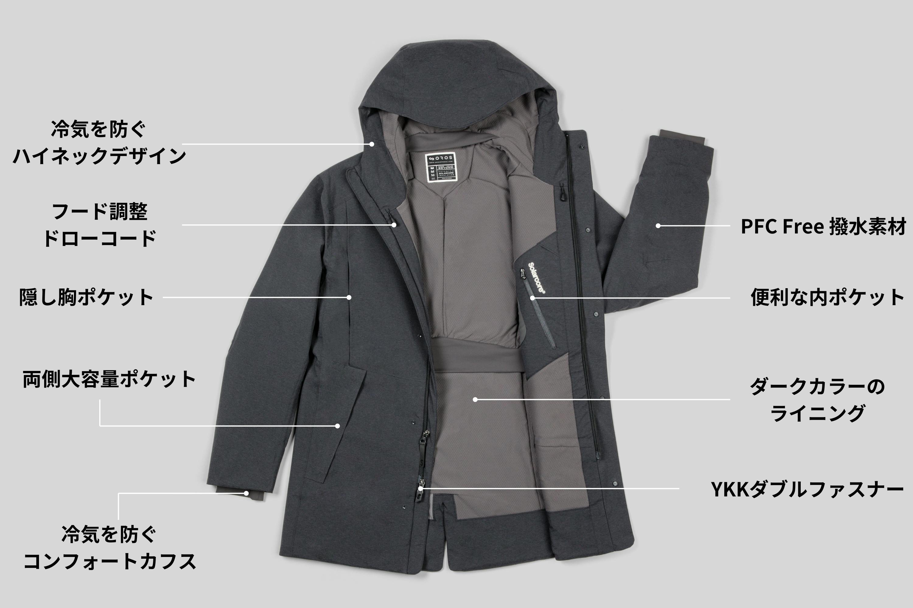 着脱可能なストームガードで寒暖差にも柔軟に対応し、厳しい冬でも快適に過ごせます。