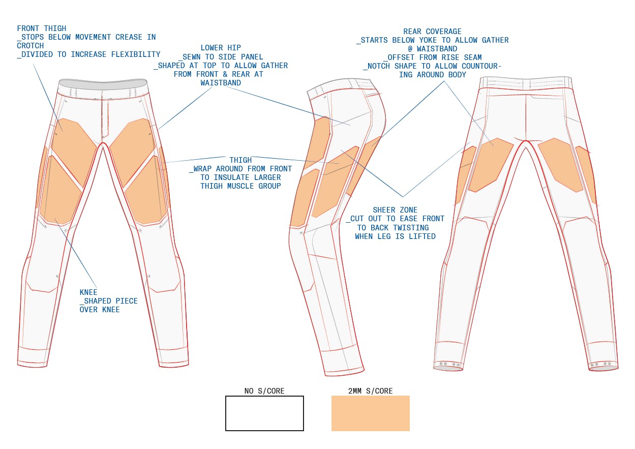 通常のパンツでは裏地が見えてしまいますがOROSのパンツは一味違います。