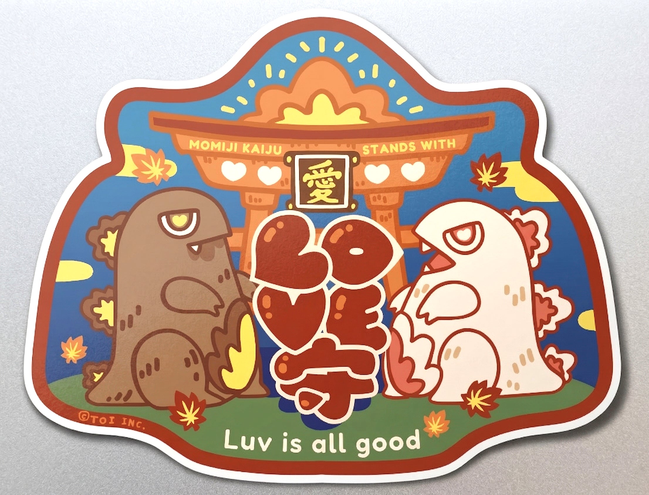 オリジナルの描きおろしデザイン画ができました↓「MOMIJI KAIJU STANDS WITH 愛(愛と共に立つ)」