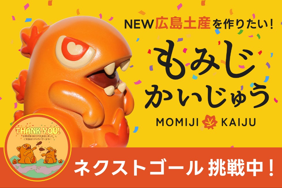 2026/04/04 19:00【ご支援者の皆様へ】 皆様の温かいご支援のおかげで、「もみじ怪獣ソフビ化プロジェクト」は、なんと開始からわずか8日目で目標金額の30万円を達成することができました!「ニュー広島土産」の誕生に向けて大きな一歩を踏み出せたこと、そしてその一歩に皆様からのお力添えをいただけたこと、心より感謝申し上げます。本プロジェクトの期間は5月5日までとなります。 この勢いでさらにプロジェクトを前進させるべく、近日中にネクストゴールとして【40万円】を設定させていただきます!ネクストゴールを達成した暁には、ご支援いただいた皆様への感謝を込めて、「お守り風オリジナルステッカー」を追加でお届けする予定です。(現在、大急ぎでステッカーのデザインを描き下ろしておりますので、楽しみにお待ちください!)改めまして、この度はご支援いただき本当にありがとうございました。 プロジェクトをさらに盛り上げていくため、SNS等での拡散にもご協力いただけますと大変心強いです。引き続き「もみじ怪獣ソフビ化プロジェクト」を応援のほどよろしくお願いいたします! もっと見る
